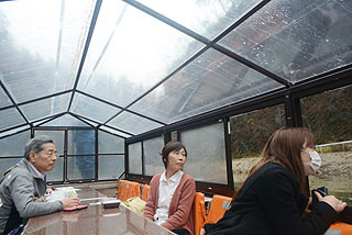 一関市東山町の名勝・猊鼻渓(げいびけい)で1日、冬季限定の「こたつ舟」の運航が始まった。 雨模様となった初日は渓谷に霧が立ちこめ、晴天とはまた違う趣。観光客らが暖をとりながら舟下りを楽しんだ。
